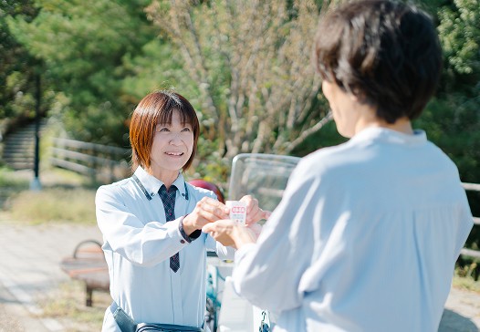担当社員と一緒にお客さまのお宅に伺い、日々のお仕事の流れをご確認いただく期間が約1か月間あります。その後、担当する地区でご自身のお客さまにヤクルト商品と健康情報のお届けをしていただきます。